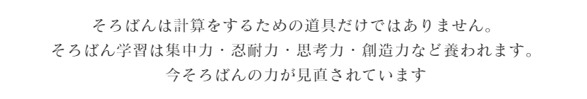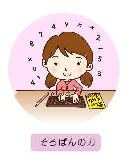 昔から学習の基礎は『読み・書き・そろばん』と言われるように計算能力を育てるには、そろばんは大切な教具です。そろばん式暗算では、頭の中でそろばんの球をイメージし、実際のそろばんと同じように動かして計算できるようになります。